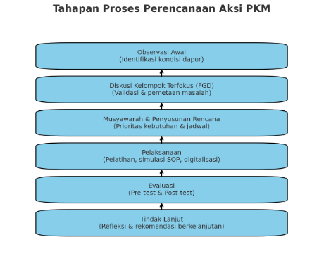 Program Pengabdian kepada Masyarakat (PKM) ini bertujuan mentransformasi tata kelola dapur dan standarisasi menu di ‘Aisyiyah Boarding School (ABS) Bandung. Permasalahan utama mencakup belum diterapkannya Good Manufacturing Practices (GMP) dan Hazard Analysis Critical Control Point (HACCP), pemborosan bahan baku ±15%, serta ketiadaan standar menu bergizi seimbang. Metode yang digunakan adalah riset aksi partisipatif (Participatory Action Research/PAR) dengan pendekatan pelatihan, pendampingan, dan implementasi sistem digital pencatatan stok serta perencanaan menu. Hasil evaluasi menunjukkan peningkatan skor kompetensi staf dari rata-rata 2,13 (pre-test) menjadi 4,53 (post-test), dengan peningkatan tertinggi pada aspek HACCP (+2,7) dan GMP (+2,6). Efisiensi penggunaan bahan baku meningkat ±15%, serta kepuasan santri terhadap variasi menu juga meningkat. Program ini menjadi model praktik baik transformasi dapur pesantren modern yang dapat direplikasi di lembaga serupa.