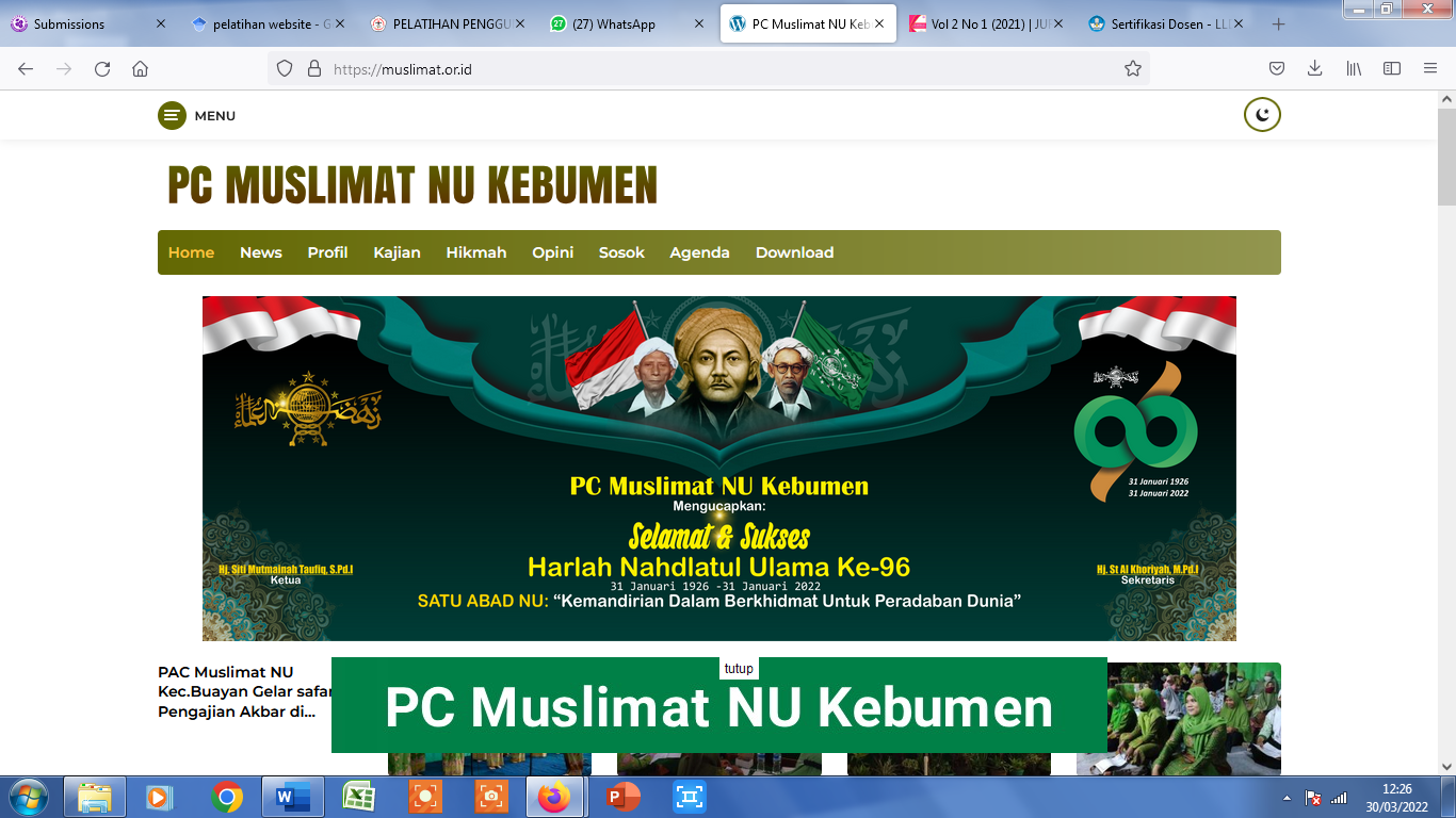Pelatihan Pengelolaan Website untuk Pengurus PC dan Pengurus PAC Muslimat NU Se-Kebumen